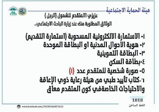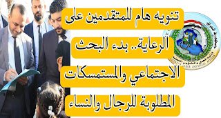 تنويه هام للمتقدمين على الرعاية.. بدء البحث الاجتماعي والمستمسكات المطلوبة للرجال والنساء
