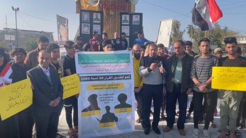 *الصورة من وقفة احتجاجية شعبية في مدينة كربلاء قبل يومين تطالب بعدم تمرير قانون المحكمة الاتحادية في الدورة البرلمانية الحالية.